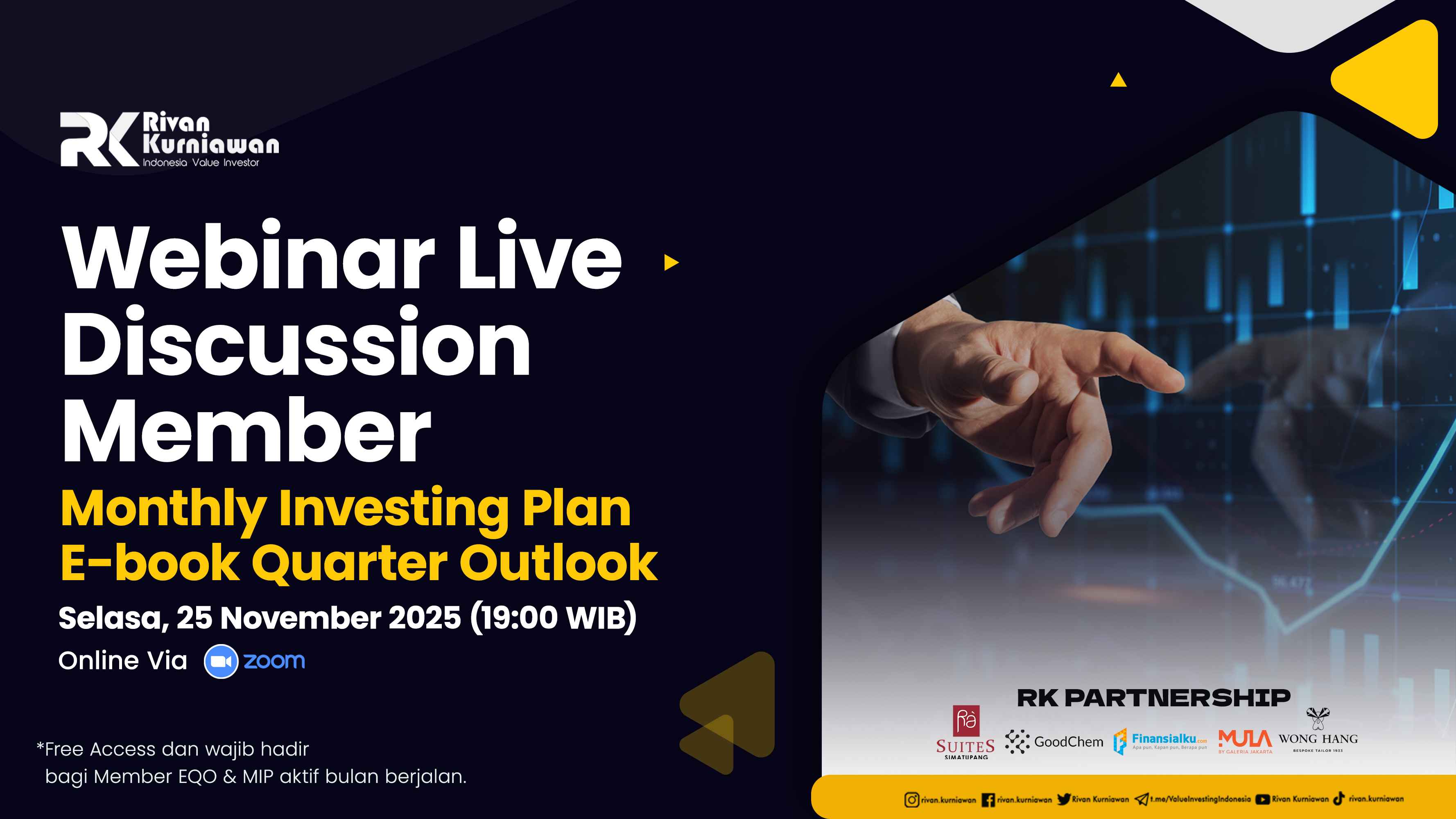 3. Webinar Exclusive, seperti Webinar Bedah Emiten dan Market Insight yang diadakan oleh RK Team secara berkala baik secara online maupun offline.